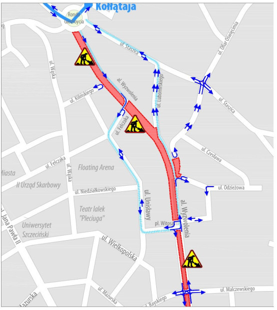 Nie w sobotę, tylko w niedzielę, 28 maja, wprowadzone zostaną zmiany związane z kolejnymi etapami przebudowy torowisk i ulic w kierunku Niebuszewa oraz Pomorzan. Planowane jest zamknięcie skrzyżowania al. Wyzwolenia i ul. Ofiar Oświęcimia oraz rozpoczęcie prac na kolejnych fragmentach ul. Dworcowej i ul. Nowej.