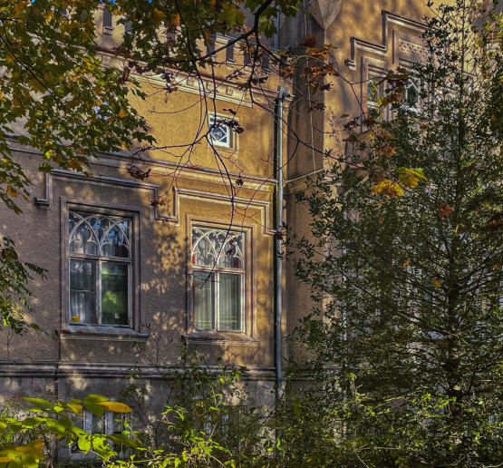 Neogotycki gmach zwraca uwagę swoją zamkową formą oraz wieżami, którymi jest otoczona. Do czasów drugiej wojny światowej mieszkali w niej kapitan marynarki W. Lauter oraz kupiec Paul Schegel, który przyczynił się do zapisania najczarniejszego rozdziału willi. Przedsiębiorca wynajął ją powiem oddziałom SS, dla których była siedzibą do końca drugiej wojny światowej.