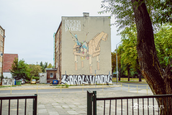 Pod nową elewacją zniknął mural z koniem trojańskim autorstwa Chazme, Sepe i Lumpa. Nie widać już też niemieckich napisów, świadczących o przedwojennej historii budynku.