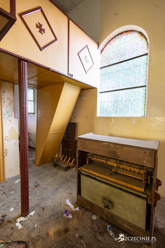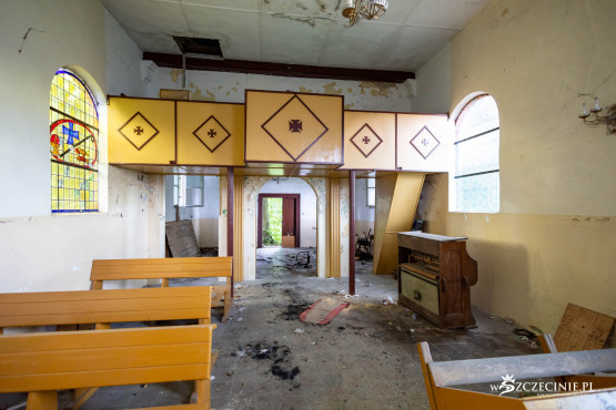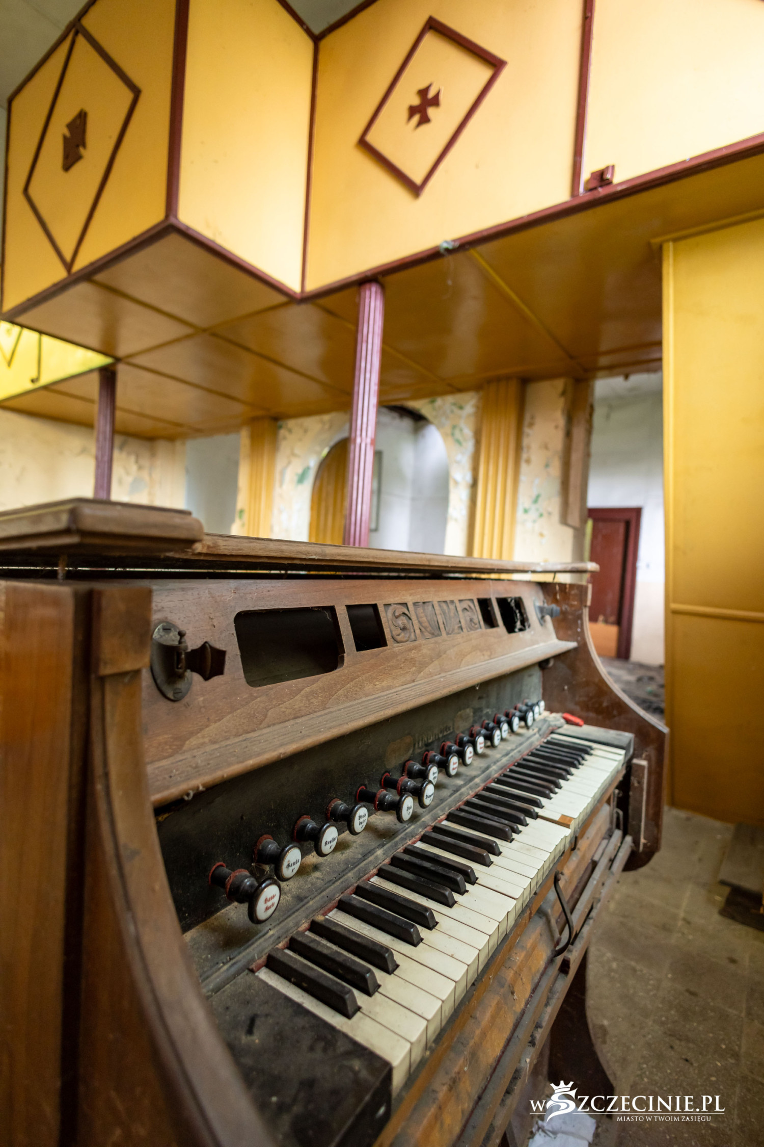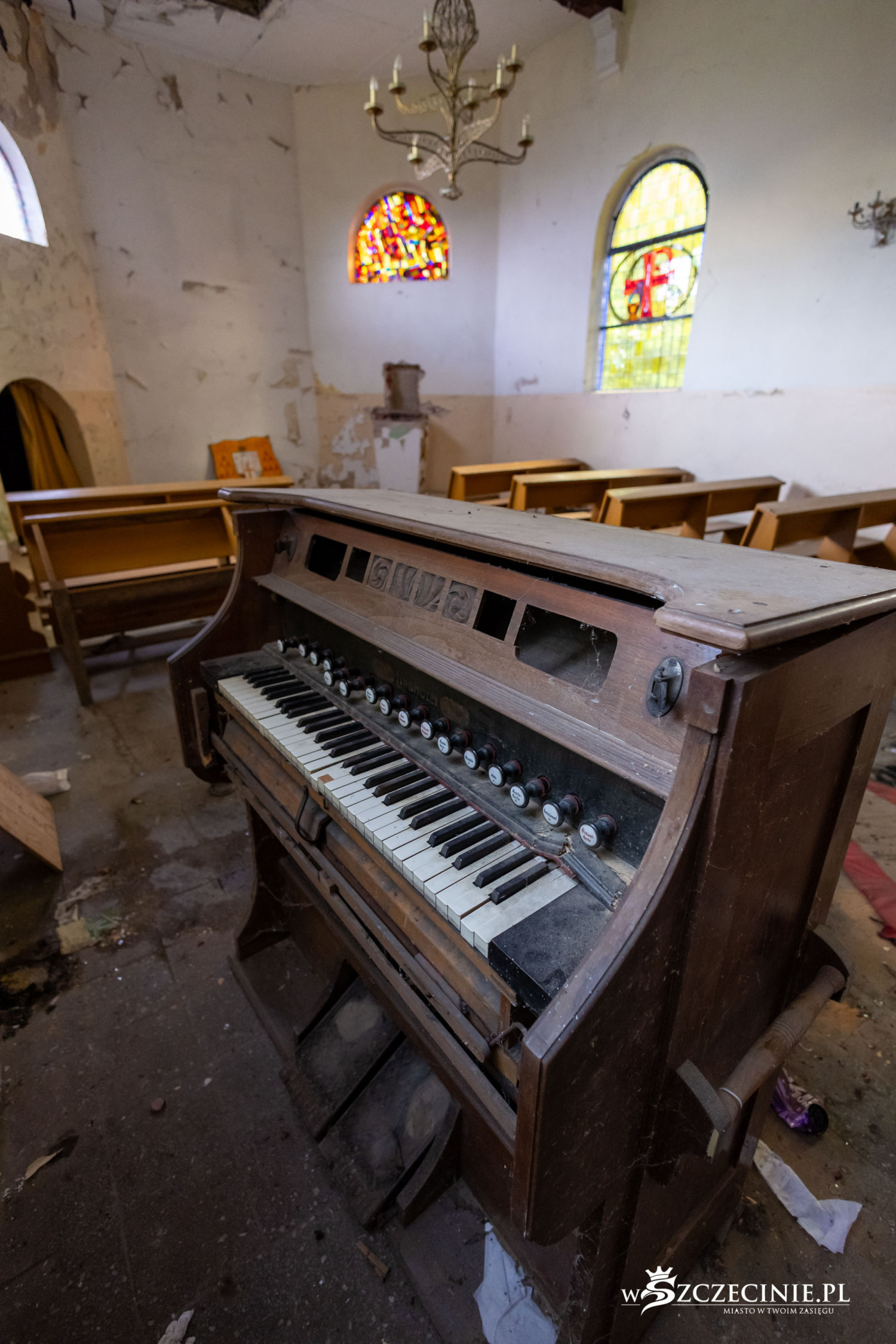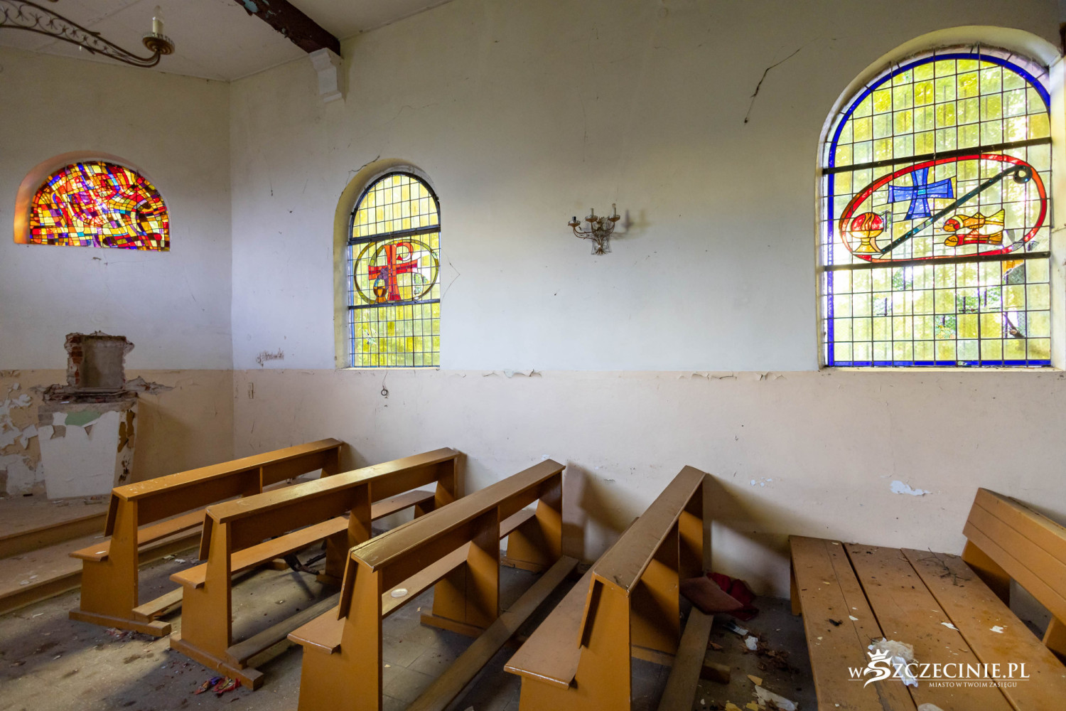 – Minimalistyczne wyposażenie, ławki, chór i przedwojenna lub tużpowojenna fisharmonia [instrument działający na podobnej zasadzie jak organy – red.] – opisuje dr Marek Łuczak, policjant zajmujący się odzyskiwaniem zabytków, który przyglądał się kaplicy po ostatnim włamaniu. – Zgłoszenia w tej sprawie nie otrzymaliśmy. Wykonałem dokumentację fotograficzną, którą przekazałem miejskiemu konserwatorowi zabytków.