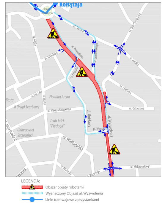 Prace drogowe prowadzone w al. Wyzwolenia związane są z przebudową torowisk w kierunku Niebuszewa. Ich finalizacja zapowiadana jest do końca lipca. Co obecnie dzieje się na placu budowy?
