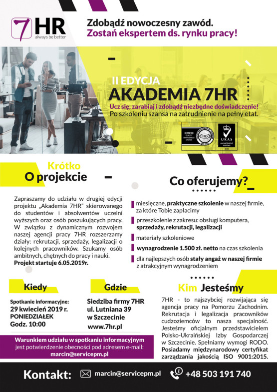 Spotkanie informacyjne już w poniedziałek o godzinie 10:00 w siedzibie firmy 7HR, przy ulicy Lutnianej 39.