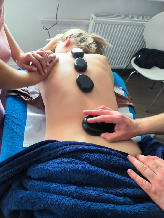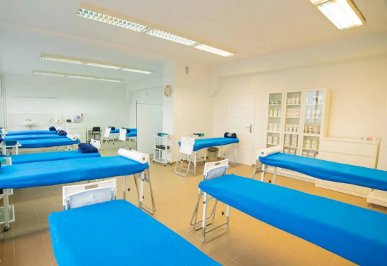 - salę do zabiegów SPA i masażu na ciało, wyposażoną w profesjonalne masażery, kamienie i akcesoria, z miejscem dla 24 studentów;