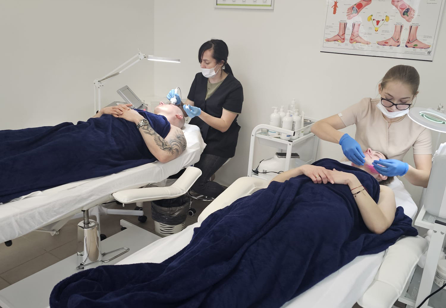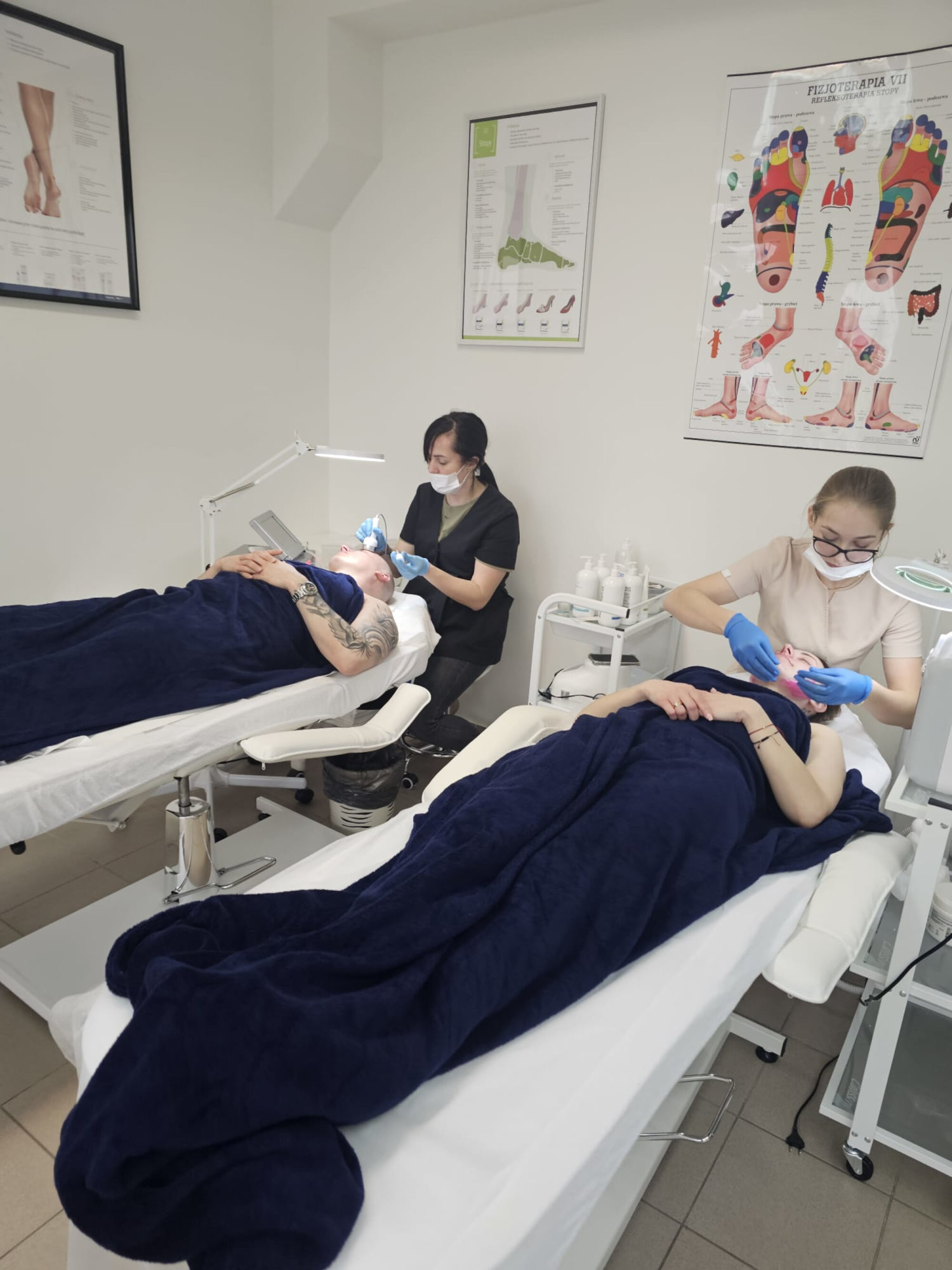 - nowoczesną salę podologiczną dostosowaną do prowadzenia zajęć z zakresu specjalistycznej pielęgnacji i terapii stóp, wyposażoną m.in. w wysokiej klasy frezarki podologiczne Promed 4030 oraz pełne spektrum narzędzi i materiałów umożliwiających naukę pracy z odciążeniami, ortezami, tamponadami, klamrami korygującymi i innymi technikami specjalistycznymi;