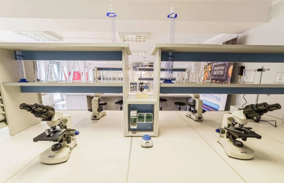 - laboratorium chemiczne, umożliwiające pracę w grupach do 20 osób – idealne do nauki analizy składników kosmetycznych i tworzenia własnych receptur.