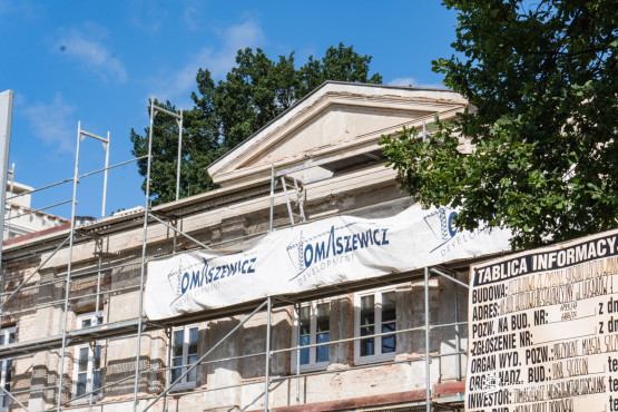 Ten etap prac już jednak za inwestorem. Powoli odnawiana jest elewacja, pierwsze efekty widać od strony parku. Wnętrza są niemal w całości przebudowywane, ale tam też znajdą się nawiązania do przeszłości. W piwnicy zachowane zostaną stare ściany kamienno-ceglane, w tym historyczne łuki.